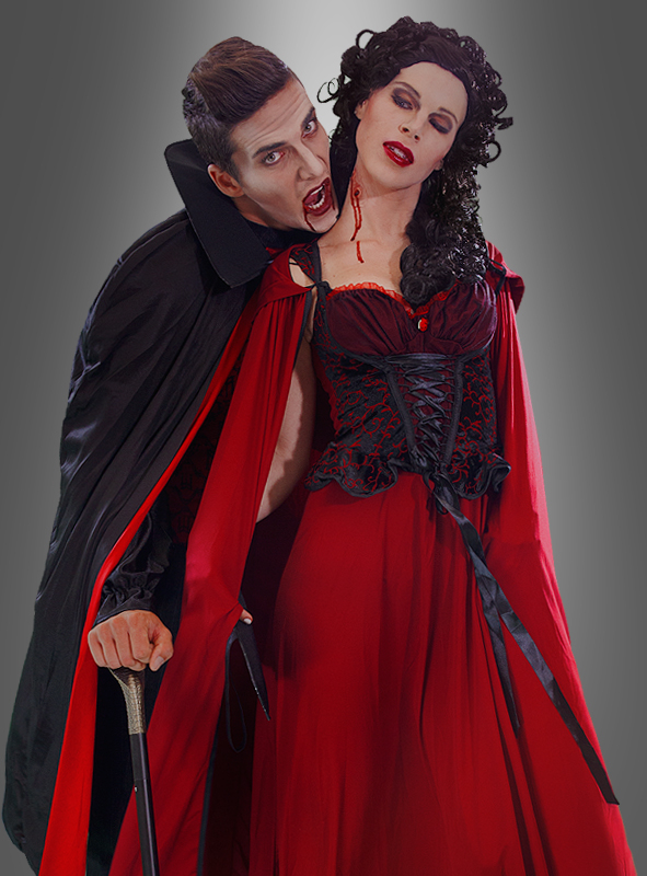 Sexy Kleid mit Korsagenoberteil aus schwarzem Samt mit rotem Rankenmuster und Schnürung vorne. Verziert mit schwarzer Tüllauflage im Bereich der Schnürung, kleiner roter Stoffrose am Ausschnitt und geraffte Tüllborte. Bei diesem Dekolleté wird sogar dem bösen Wolf ganz anders. Umhang mit weiter Kapuze und schwarzen Bindebändern. Mit dabei ist ein rot-schwarz kariertes Tuch für den Korb.
